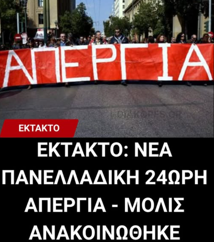 ΕΚΤΑΚΤΟ: ΝΕΑ ΠΑΝΕΛΛΑΔΙΚΗ 24ΩΡΗ ΑΠΕΡΓΙΑ – ΜΟΛΙΣ ΑΝΑΚΟΙΝΩΘΗΚΕ