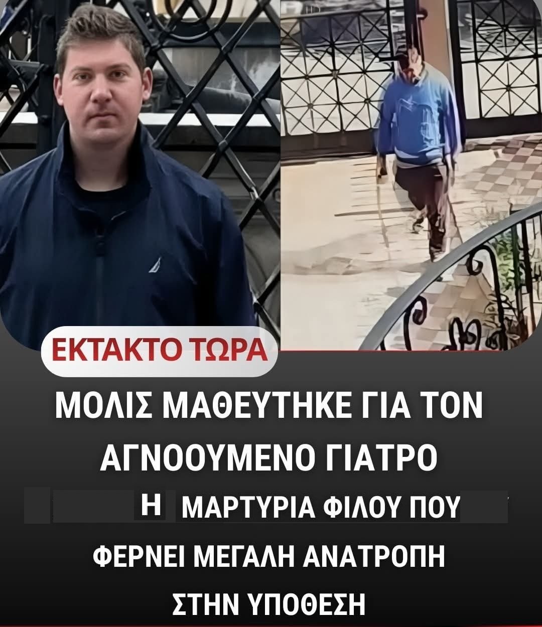 ΜΟΛΙΣ ΜΑΘΕΥΤΗΚΕ ΓΙΑ ΤΟΝ ΑΓΝΟΟΥΜΕΝΟ ΓΙΑΤΡΟ – ΣΟΚΑΡΙΣΤΙΚΗ ΜΑΡΤΥΡΙΑ ΦΙΛΟΥ ΤΟΥ ΜΕ ΝΕΕΣ ΠΛΗΡΟΦΟΡΙΕΣ