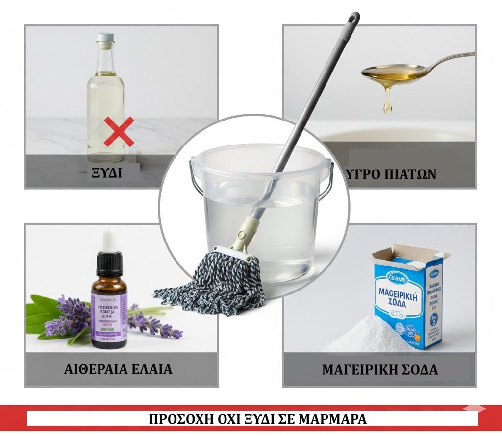 Τέσσερα πράγματα που μπορείτε να βάλετε στο νερό της σφουγγαρίστρας για αστραφτερά δάπεδα