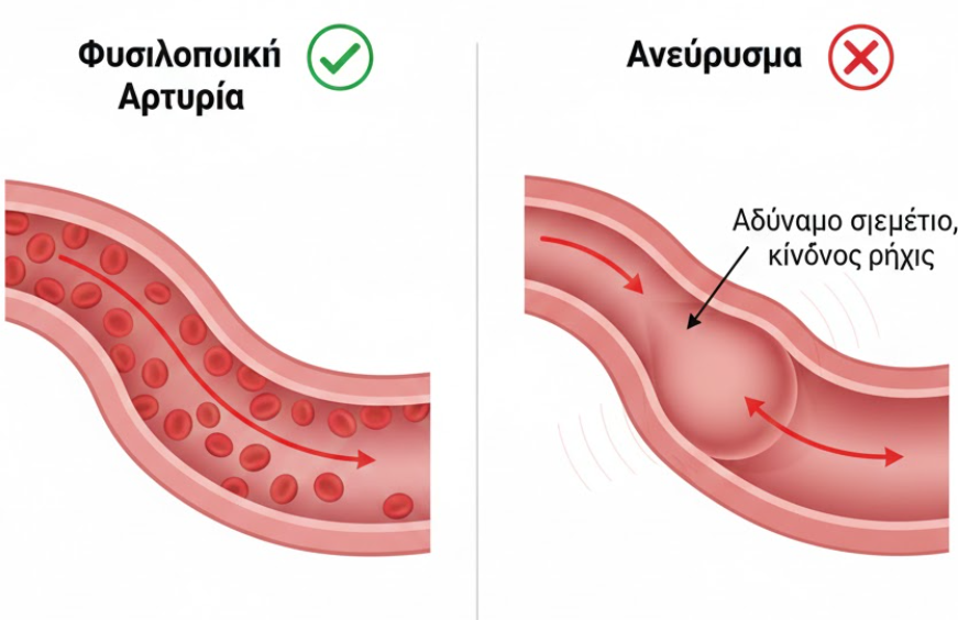 Αυτό ακριβώς συμβαίνει και στις αρτηρίες μας. Το τοίχωμα της αρτηρίας εξασθενεί και, λόγω της πίεσης του αίματος, δημιουργείται μια διόγκωση. Ο μεγάλος φόβος είναι ότι αν αυτό το «μπαλόνι» μεγαλώσει πολύ, μπορεί να σπάσει (ρήξη), προκαλώντας εσωτερική αιμορραγία.