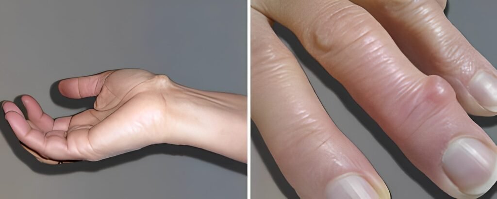 Πρόκειται για κύστεις που περιέχουν υγρό και εμφανίζονται δίπλα στις αρθρώσεις ή στους τένοντες.