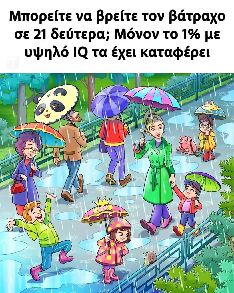 Ένας φυσιολογικός ανθρώπινος εγκέφαλος μπορεί να δει την εικόνα αλλά να μην καταφέρει να βρει τον βάτραχο. Κάποιος που διαθέτει υψηλό IQ και έχει παρατηρητικότητα θα τα καταφέρει. Μήπως είστε εσείς;