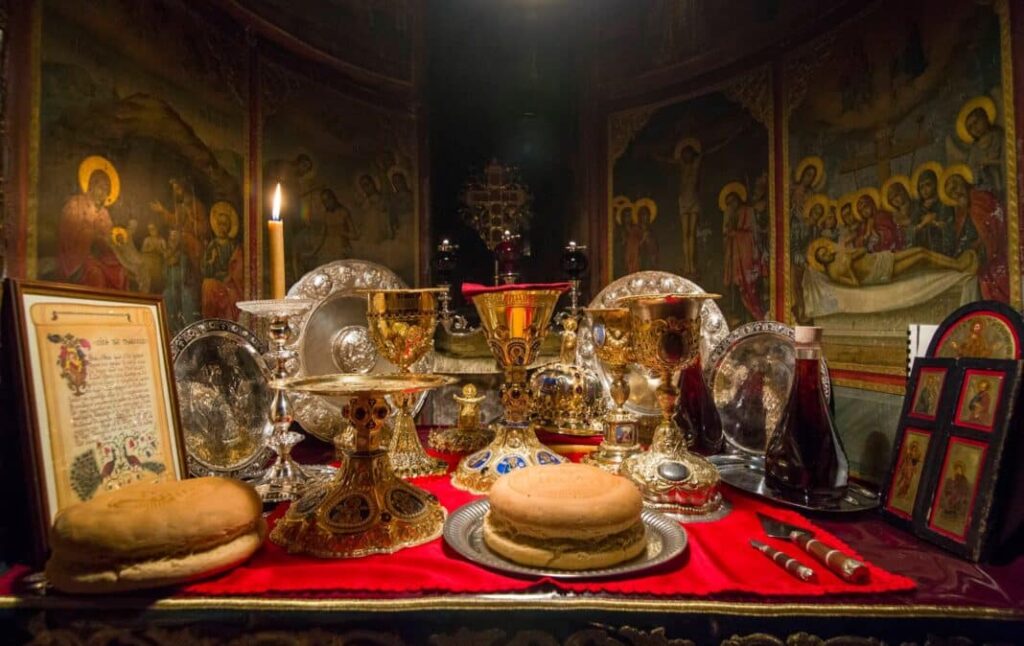 Η τράπεζα είναι γεμάτη από τα τίμια Δώρα όπως ήταν και προηγουμένως. «Πίετε εξ αυτού πάντες», φώναξε η Εκκλησία, «πάντες». Ετοιμάζεσθε ή να ετοιμαζόμαστε, για να κοινωνούμε των Αχράντων Μυστηρίων.