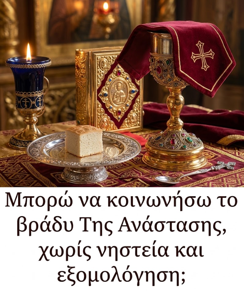Πολλοί αδελφοί μας πιστεύουν πως μπορούν να Κοινωνήσουν το βράδυ Της Ανάστασης χωρίς νηστεία και εξομολόγηση.