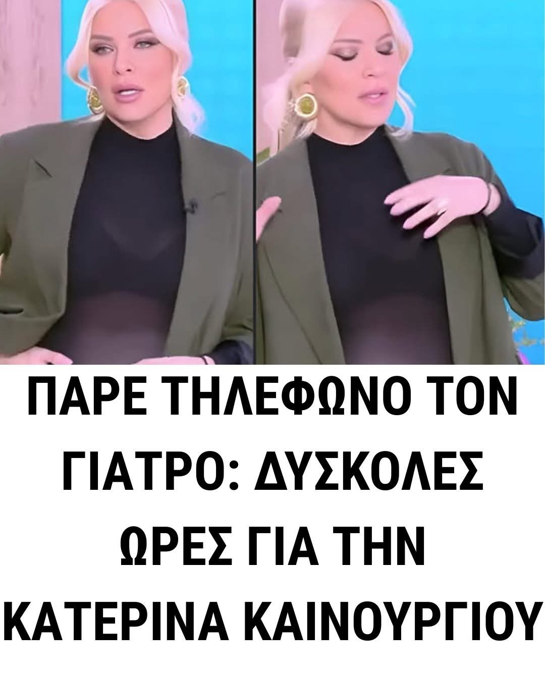 Το πρωί της Τετάρτης (14/1), στην εκπομπή Super Κατερίνα στον Alpha, η Κατερίνα Καινούργιου αποχώρησε για λίγο από το πλατό.