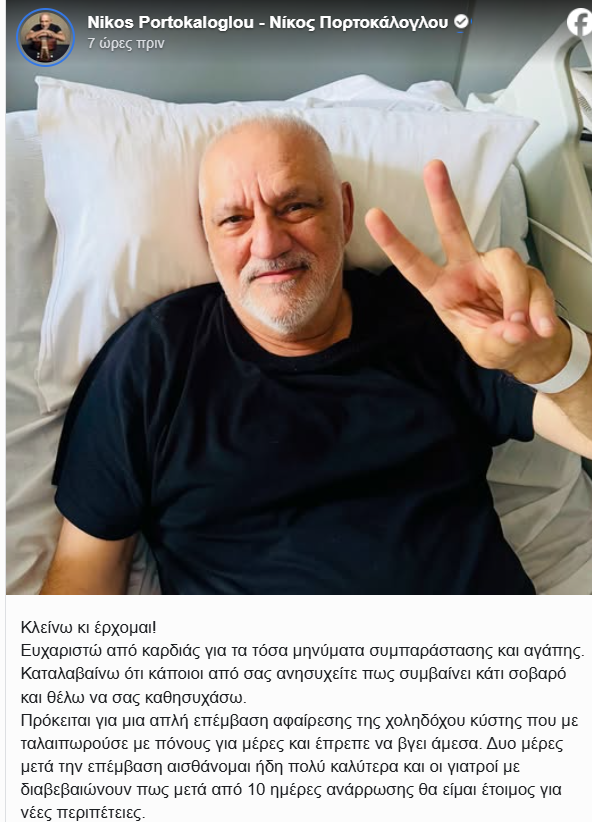 Δύσκολες ώρες για τον Νίκο Πορτοκάλογλου: Η φωτογραφία μέσα από το νοσοκομείο και η κατάσταση της υγείας του