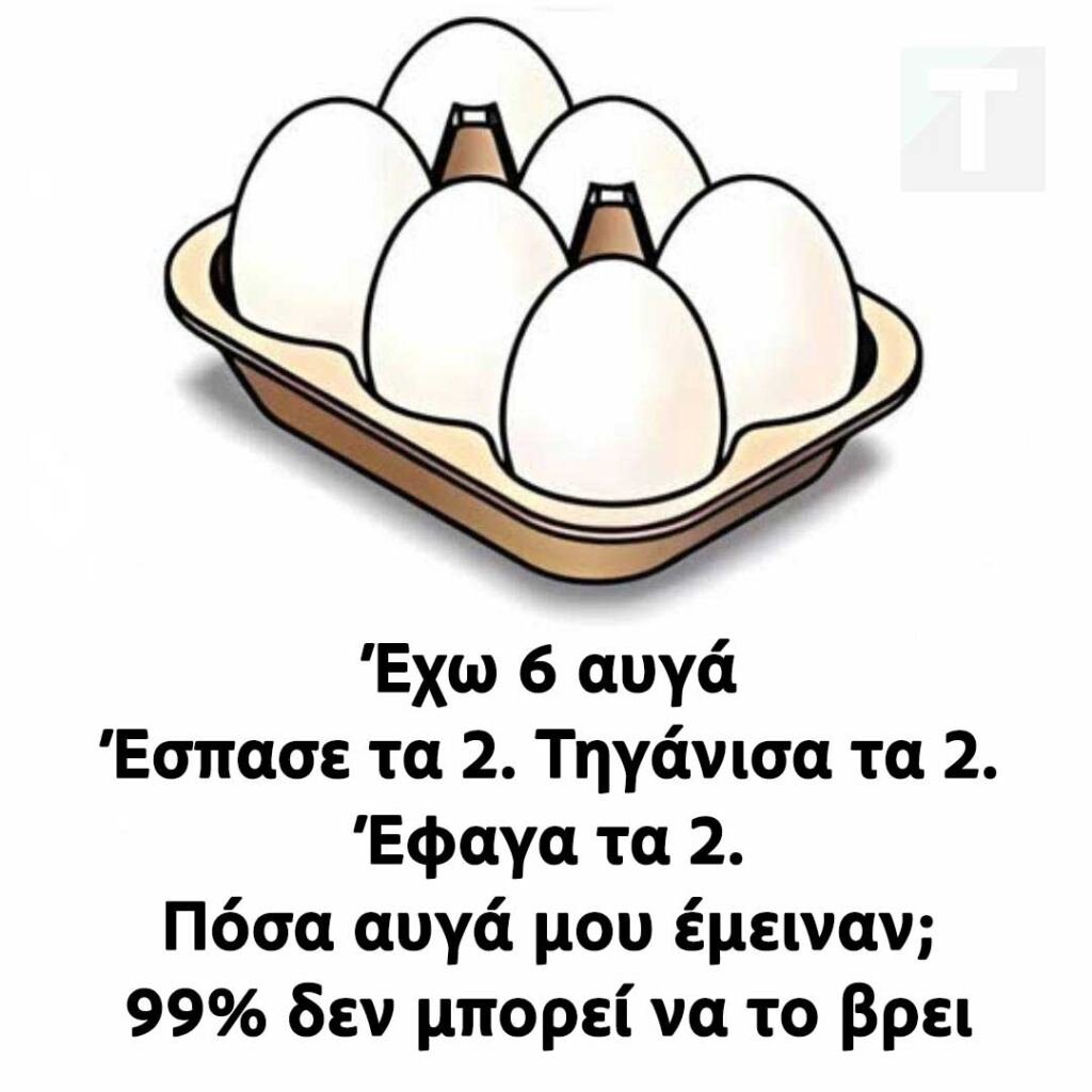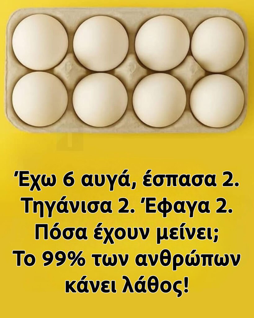 Έχω 6 αυγά. Έσπασα τα 2. Τηγάνισα τα 2. Έφαγα τα 2. Πόσα αυγά μου έμειναν; 99% δεν μπορεί να το βρει