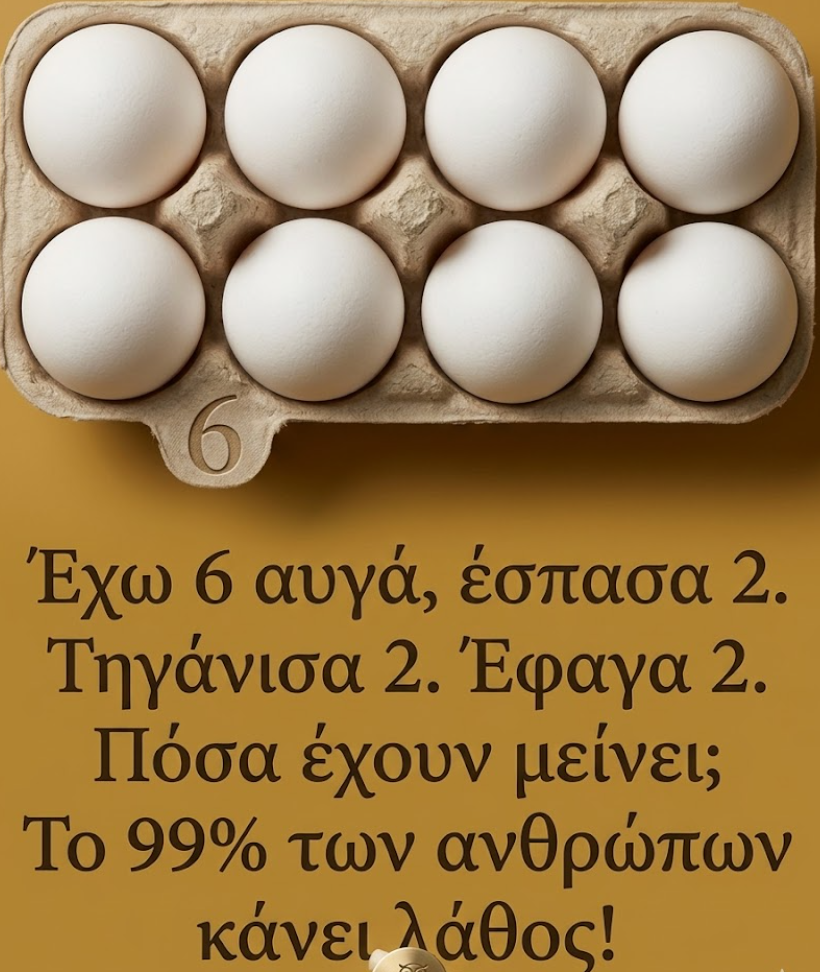 Έχω 6 αυγά. Έσπασα τα 2. Τηγάνισα τα 2. Έφαγα τα 2. Πόσα αυγά μου έμειναν; 99% δεν μπορεί να το βρει