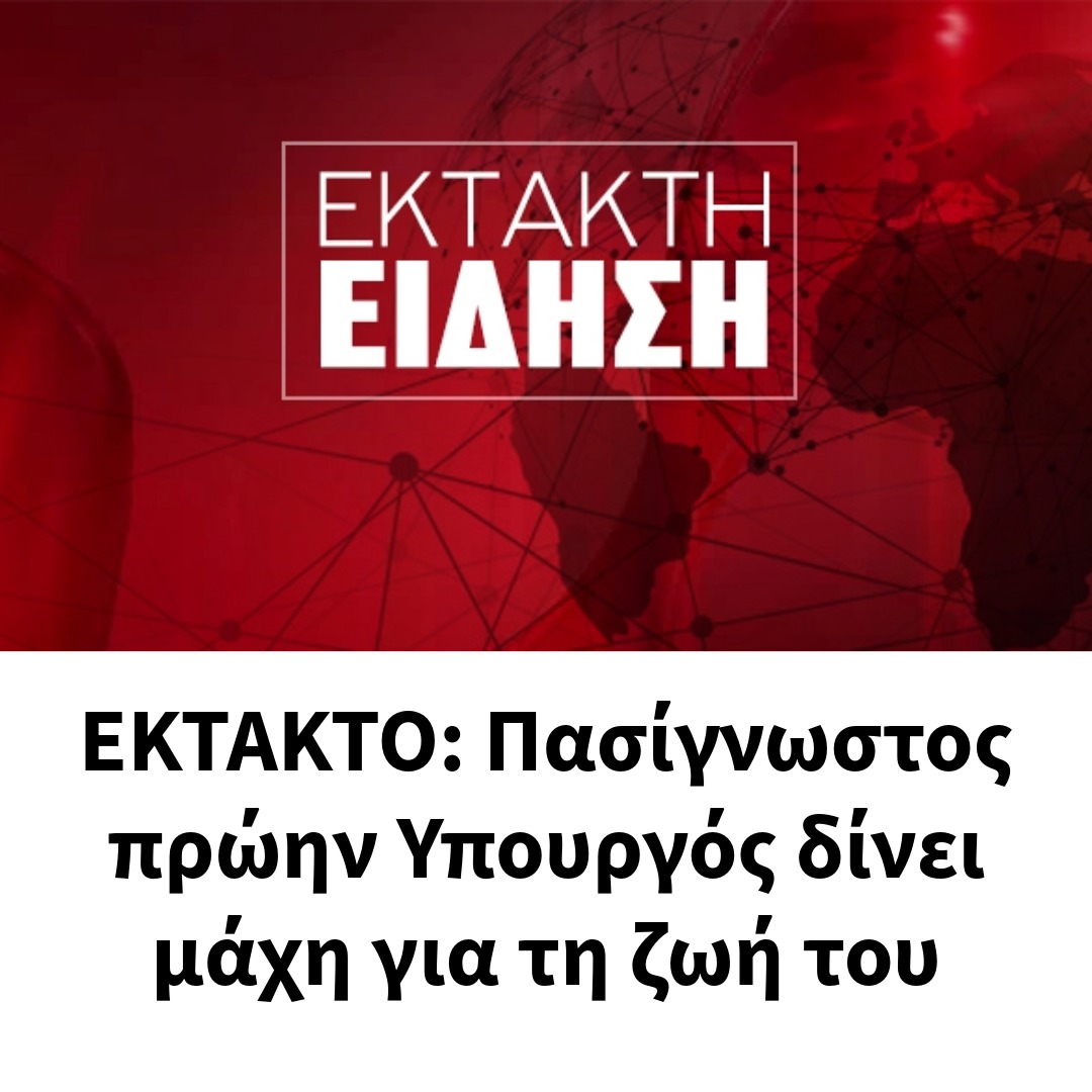 ΕΚΤΑΚΤΟ: Πασίγνωστος πρώην Υπουργός του Πασοκ δίνει μάχη για τη ζωή του