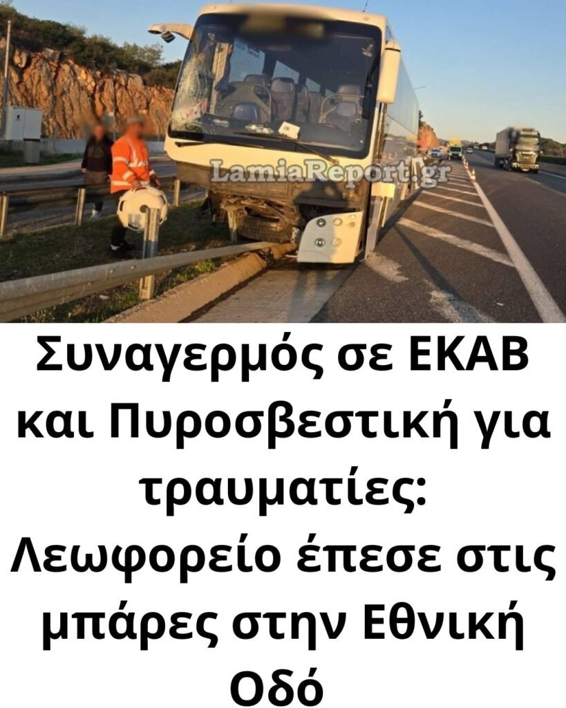 Συναγερμός σε ΕΚΑΒ και Πυροσβεστική για τραυματίες: Λεωφορείο έπεσε στις μπάρες στην Εθνική Οδό