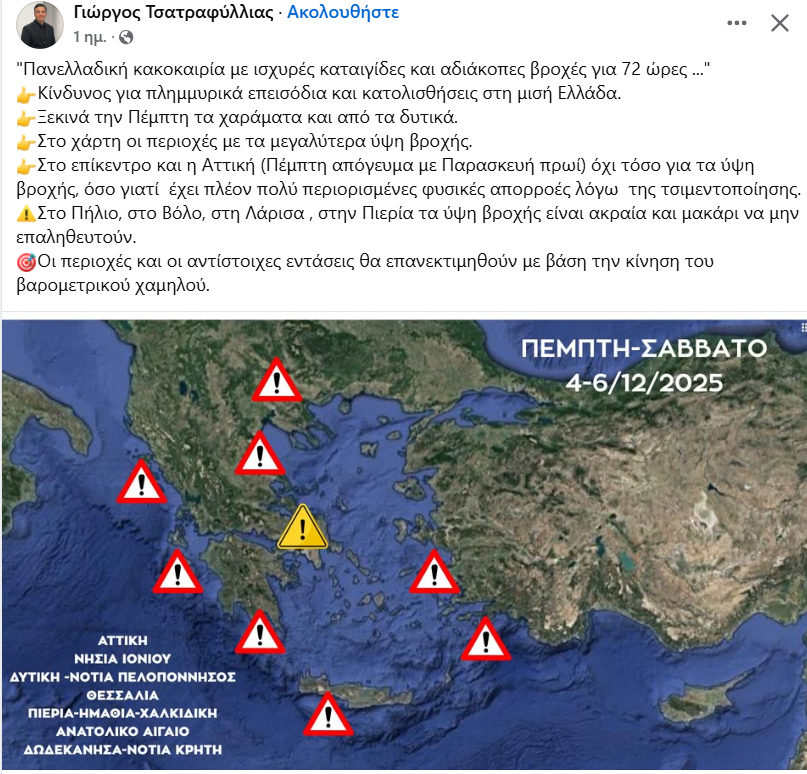 ΠΡΟΓΝΩΣΗ ΓΙΑ ΣΗΜΕΡΑ ΠΕΜΠΤΗ 04-12-2025