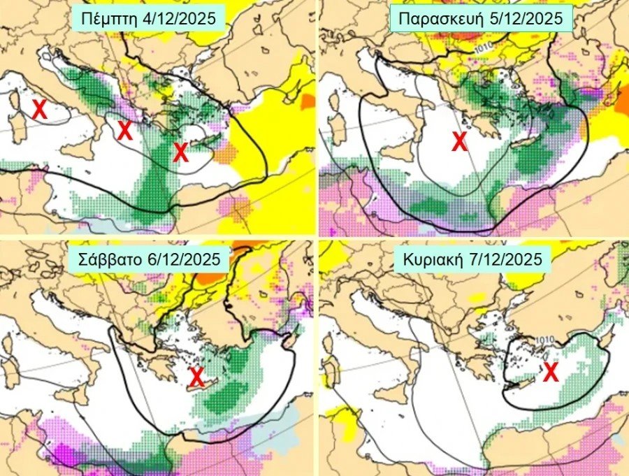 Αύριο Πέμπτη (04-12-25) κατά τόπους ισχυρές βροχές και καταιγίδες προβλέπονται: