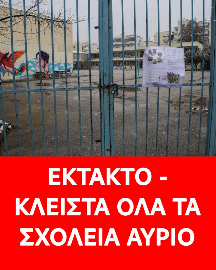 Κλειστά αύριο Παρασκευή όλα τα σχολεία της Αττικής λόγω κακοκαιρίας