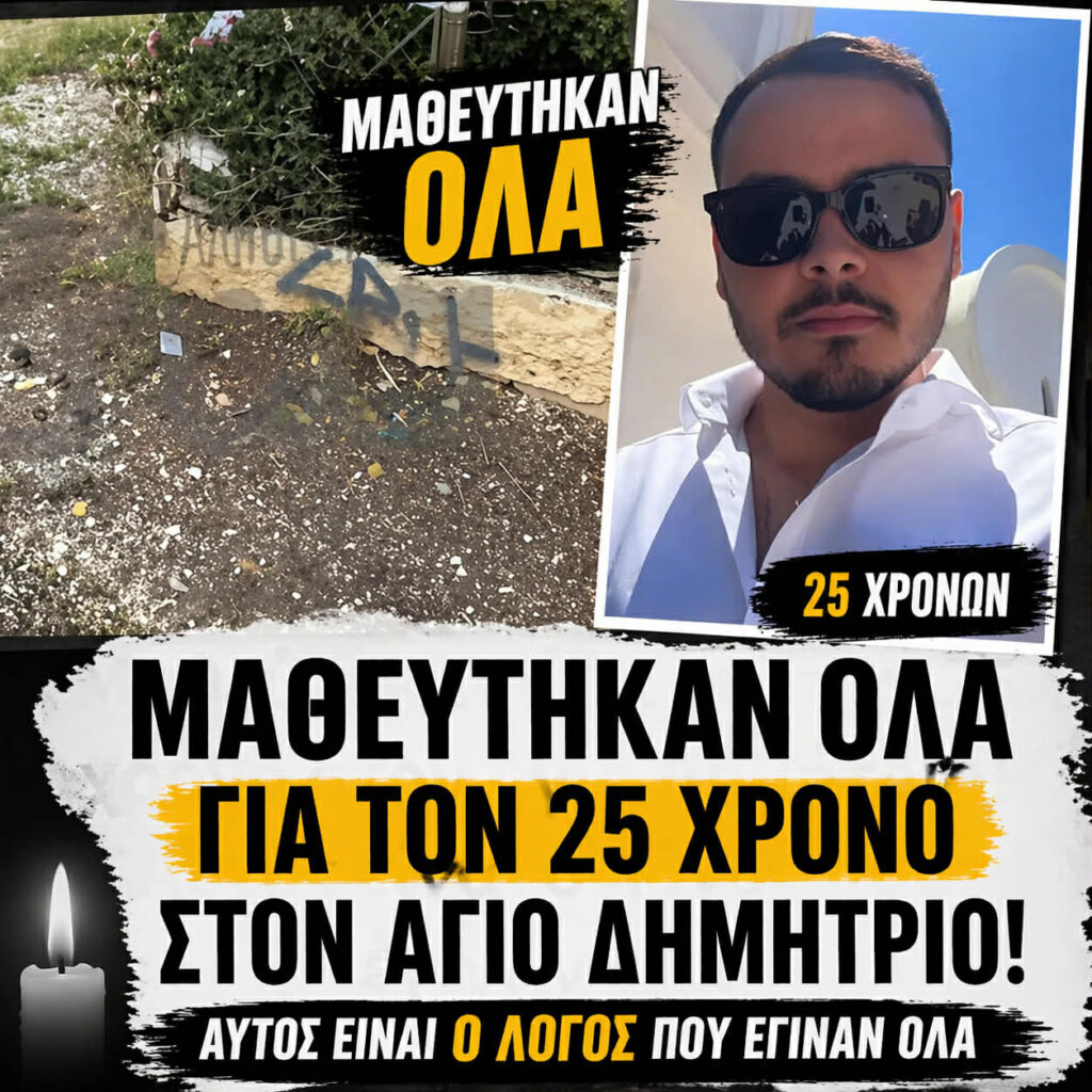 Ένας 25χρονος άνδρας (ορισμένες πηγές αναφέρουν 27χρονος) εντοπίστηκε νεκρός το βράδυ της Τετάρτης, 22 Απριλίου 2026, στον Άγιο Δημήτριο, φέροντας θανατηφόρο τραύμα από μαχαίρι στην καρδιά.