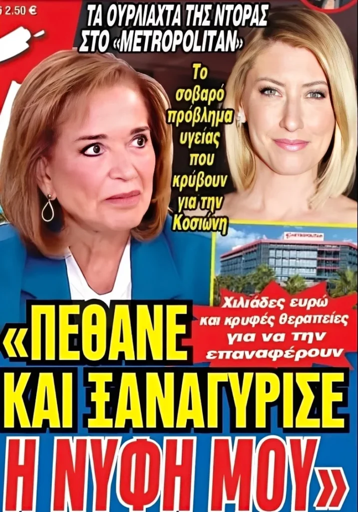 Στο πλευρό της, σιωπηλή αλλά συντετριμμένη, η Ντόρα Μπακογιάννη. Οι διάδρομοι του Metropolitan αντήχησαν από την αγωνία μιας πεθεράς που δεν άντεχε την ιδέα πως η νύφη της παλεύει για κάθε ανάσα. Σύμφωνα με μαρτυρίες, η ένταση της στιγμής κορυφώθηκε, με τη φωνή της να σπάει από φόβο και απόγνωση, σε μια σκηνή που συμπύκνωνε όλο τον πόνο της οικογένειας: να σωθεί η Σία.