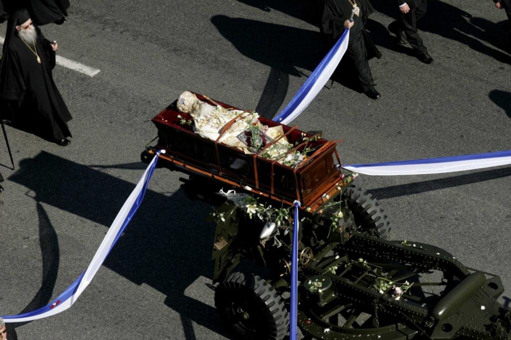 «Ποιος δεν τον έχει μνημονεύσει όλα αυτά τα χρόνια και ποιος δεν έχει πει, πού ‘σαι, Χριστόδουλε; Αλλά έτσι είναι η ζωή. Ο Χριστόδουλος δεν έμεινε μόνο για τους λόγους του και επειδή ήξερε να μιλάει ωραία. Άγγιξε τις καρδιές εκατομμυρίων Ελλήνων γιατί ήταν καλός άνθρωπος, καλός χριστιανός» μονολογεί και κοιτάζει αλλού προκειμένου να κρύψει το γοερό κλάμα του.