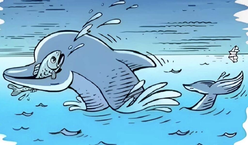 Η συνοδευτική εικόνα που… “λιώνει” το μυαλό δείχνει ένα δελφίνι να τρώει ένα ψάρι με ένα πλοίο σε απόσταση και φαινομενικά να μην φαίνεται άλλο ζώο.
