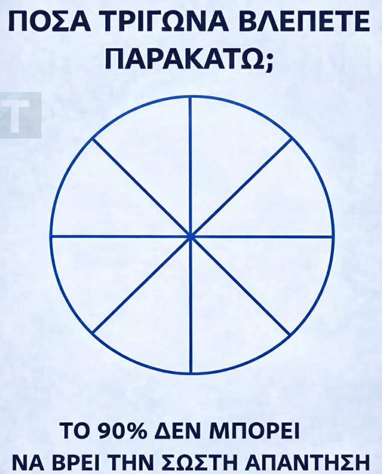 Αν μετρήσετε προσεκτικά όλα τα τρίγωνα — συμπεριλαμβανομένων τόσο των προφανών όσο και των κρυφών — θα βρείτε: