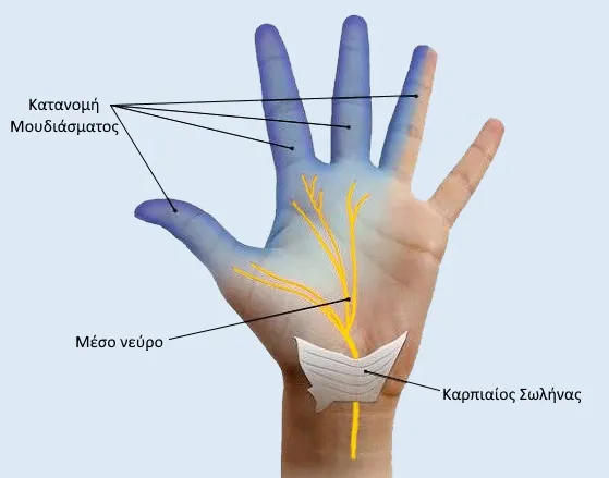 Τι συμβαίνει: Το μέσο νεύρο, που περνά από τον καρπό, πιέζεται.