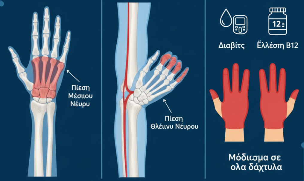 Αν το μούδιασμα επηρεάζει όλα τα δάχτυλα και των δύο χεριών, η αιτία είναι συχνά συστηματική: