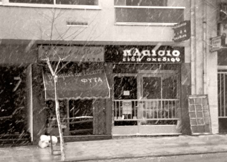Το πρώτο κατάστημα ΠΛΑΙΣΙΟ «Είδη Σχεδίου και Χαρτοπωλείου» στη Στουρνάρη το 1969 . Το κατάστημα ήταν μόλις 12 τ.μ..