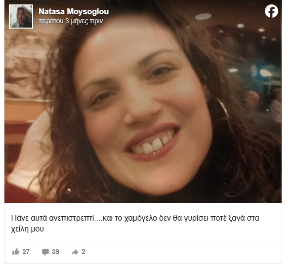 Τρεις μήνες πριν τον θάνατό της, η Νατάσσα Μωϋσόγλου είχε προχωρήσει σε μία αινιγματική ανάρτηση στα social media.