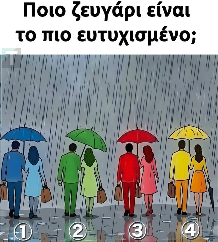 Κοίτα προσεκτικά την εικόνα και διάλεξε αυθόρμητα ποιο από τα τέσσερα ζευγάρια σου φαίνεται το πιο ευτυχισμένο. Μην το πολυσκεφτείς.