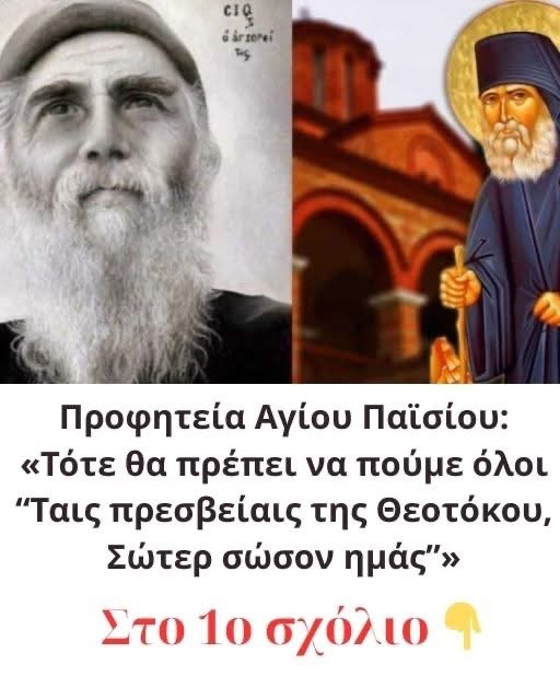 Προφητεία Αγίου Παϊσίου: «Τότε θα πρέπει να πούμε όλοι “Ταις πρεσβείαις της Θεοτόκου, Σώτερ σώσον ημάς”