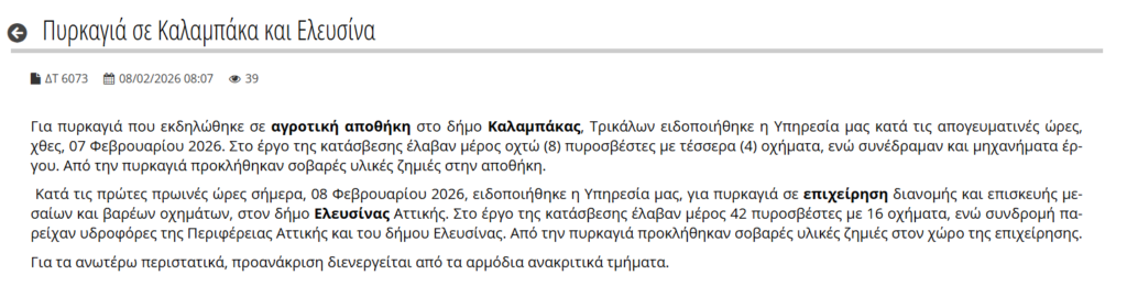 Τα ακριβή αίτια της πυρκαγιάς δεν έχουν ακόμη διευκρινιστεί. Μετά την πλήρη κατάσβεση, αναμένεται να πραγματοποιηθεί αυτοψία από το ανακριτικό τμήμα της Πυροσβεστικής, προκειμένου να διαπιστωθεί πώς ξεκίνησε η φωτιά.