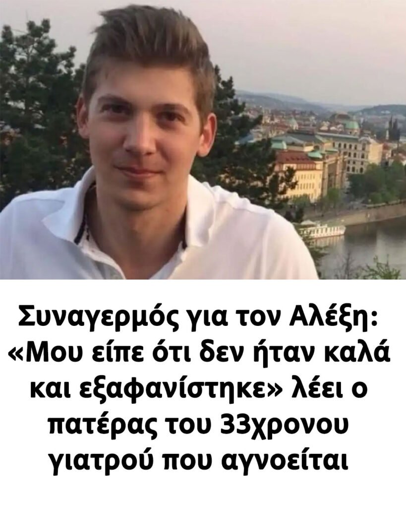 Συναγερμός για τον Αλέξη: «Μου είπε ότι δεν ήταν καλά και εξαφανίστηκε» λέει ο πατέρας του 33χρονου γιατρού που αγνοείται