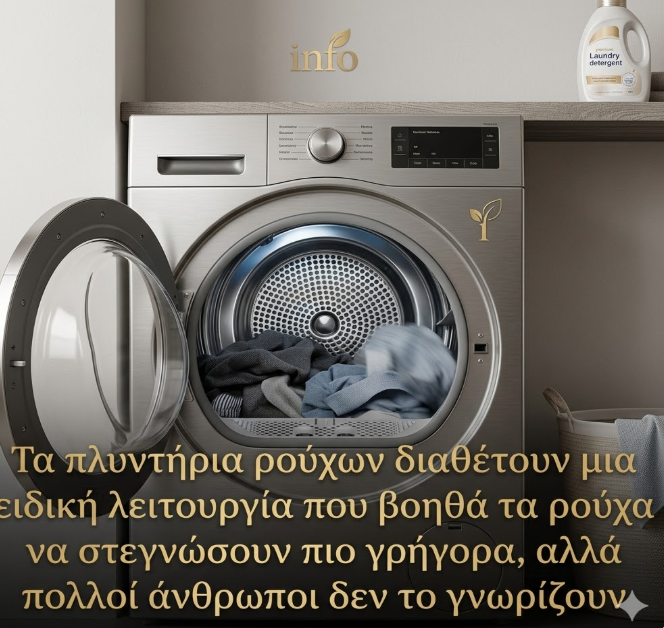Τα πλυντήρια ρούχων διαθέτουν μια ειδική λειτουργία που βοηθά να στεγνώσουν τα ρούχα πιο γρήγορα
