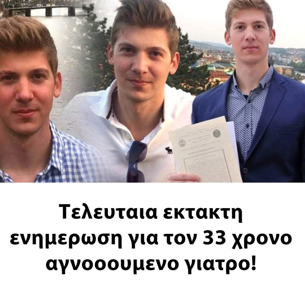 Τελευταια εκτακτη ενημερωση για τον 33 χρονο αγνοοουμενο γιατρο!