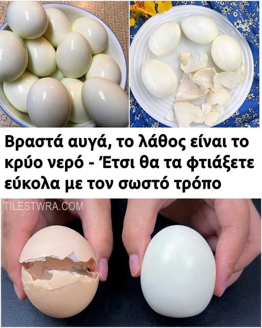 Ξεφλούδισμα: Σπάστε και ξεφλουδίστε τα αυγά κάτω από τρεχούμενο νερό, κάτι που βοηθά στην απομάκρυνση του κελύφους.