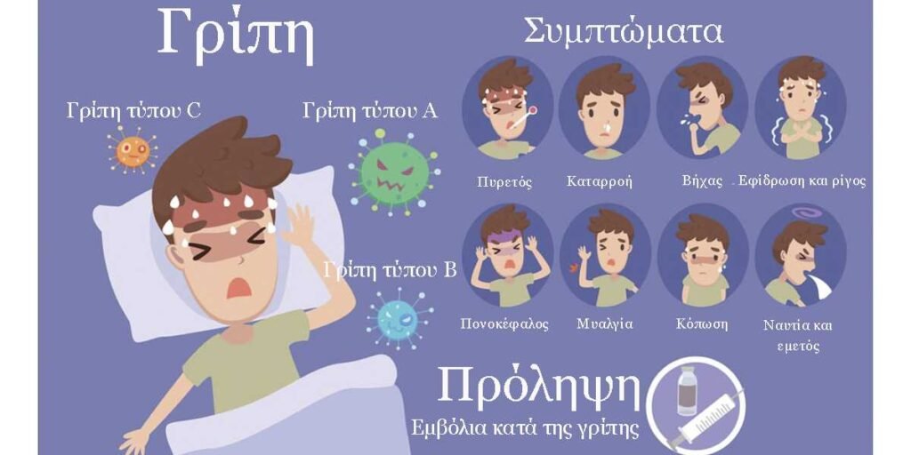 Η γρίπη συνήθως ξεκινά απότομα με πιο σοβαρά και έντονα συμπτώματα, ενώ το κρυολόγημα (κοινό κρυολόγημα) εξελίσσεται πιο σταδιακά.