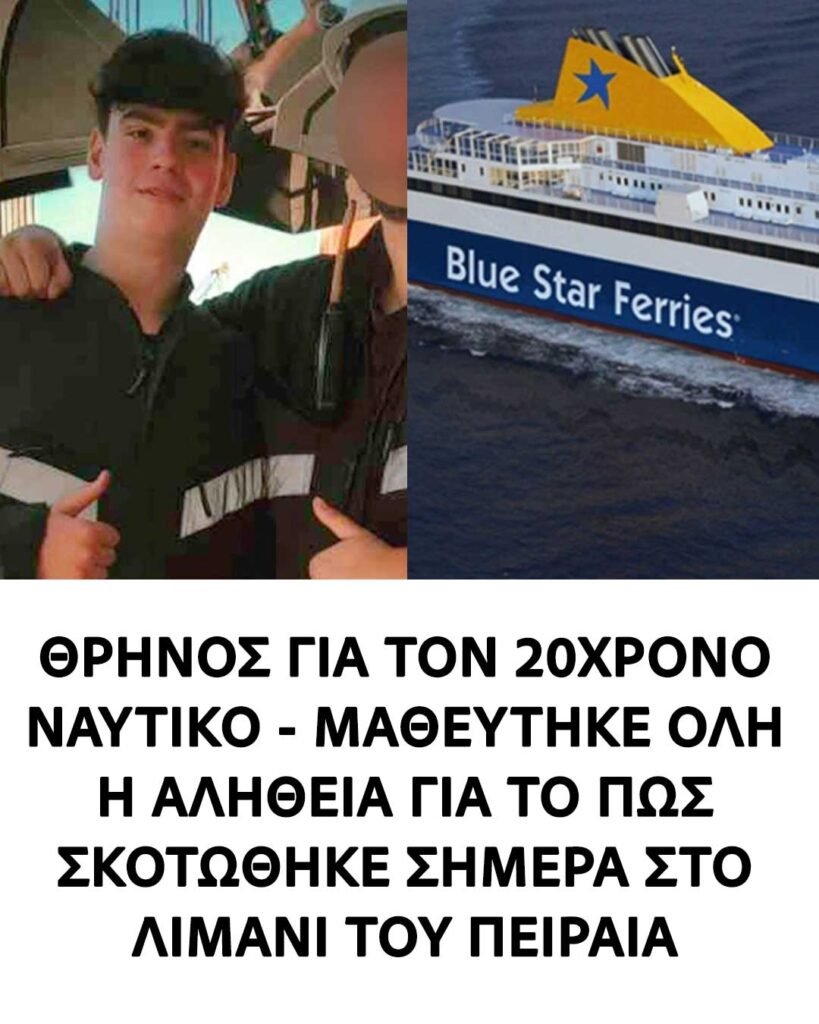 Για τον θάνατο του 20χρονου δόκιμου ναυτικού εξέδωσε ανακοίνωση και η εταιρεία Blue Star Ferries, μέσω της οποίας εξέφρασε τα συλλυπητήριά της στην οικογένεια του αδικοχαμένου νεαρού.