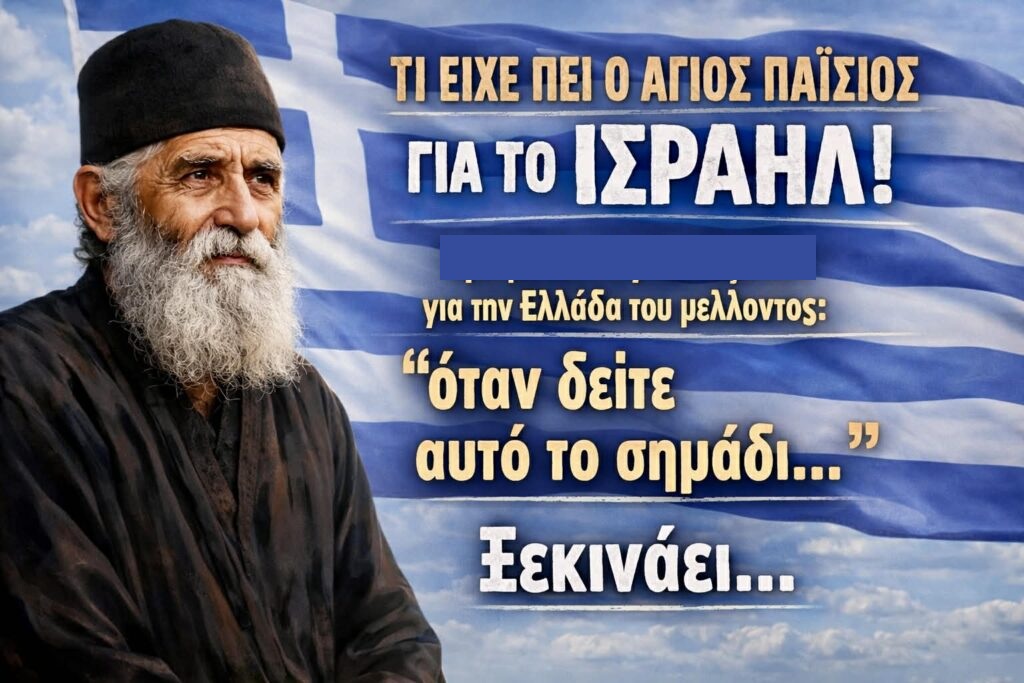 Τι είχε πει ο Άγιος Παΐσιος για το Ισραήλ Προφητεία Αγίου Παϊσίου για την Ελλάδα του μέλλοντος: «Λίγο πριν από το Μεγάλο Πόλεμο η χώρα μας…»