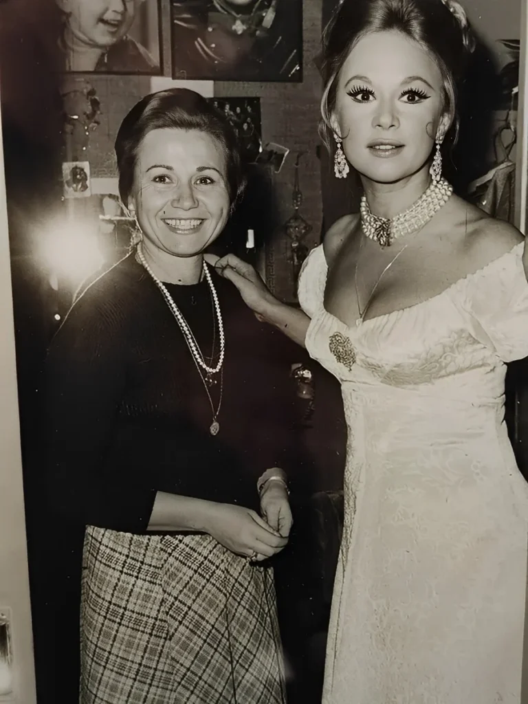 Η Λουίζα Μπατίστα και η Αλίκη Βουγιουκλάκη στα καμαρίνια στο Θέατρο Αλίκη