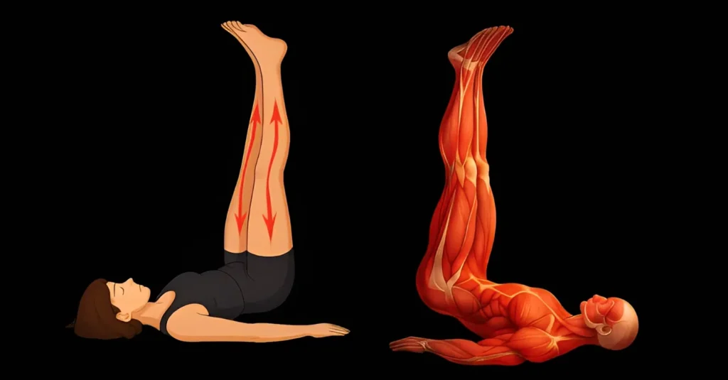 Μετά από μια κουραστική ημέρα, πρησμένοι αστράγαλοι, σφιχτές γάμπες και πόδια που καίνε είναι συνηθισμένα. Αυτή η στάση βελτιώνει την κυκλοφορία του αίματος, βοηθώντας το να επιστρέψει προς την καρδιά. Αυτό σημαίνει λιγότερο πρήξιμο, λιγότερη πίεση και μια αίσθηση ελαφρότητας στο κάτω μέρος του σώματος – σαν ένα απαλό ανακουφιστικό χάδι στα πόδια. Είναι σαν ένα λεμφικό μασάζ… χωρίς να βγείτε από το δωμάτιό σας.