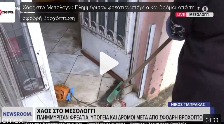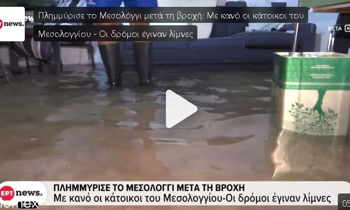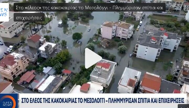 Εικόνες χάους στο Μεσολόγγι από τις πλημμύρες – Αρκετοί δρόμοι είναι απροσπέλαστοι καθώς έχουν μετατραπεί σε ποτάμια – Πλημμύρισε και το νοσοκομείο της πόλης
