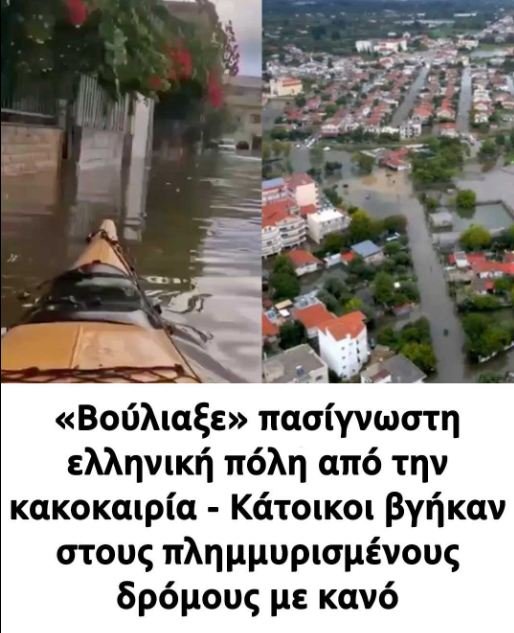 «Βούλιαξε» Ελληνική πόλη από την κακοκαιρία – Kάτοικοι βγήκαν στους πλημμυρισμένους δρόμους με κανό